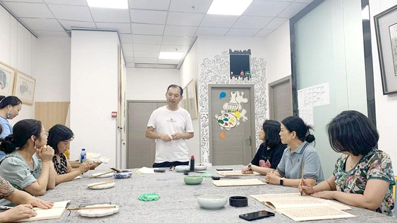 刘唐为大家一一介绍了中国书法的演变历史、毛笔书法的基础知识、毛笔书法技法入门训练等内容。大家听得津津有味,对书画艺术产生了浓厚的兴趣。