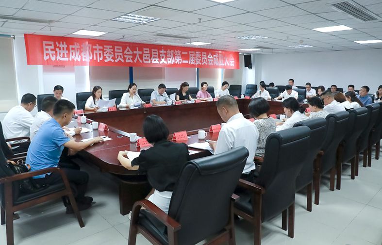 7月14日,民进大邑县支部第二届委员会成立大会在县行政中心会议室召开。市委会主委杨建德、副主委兼秘书长杜小丹,中共大邑县委统战部常务副部长李毅出席大会,成都民进基层组织代表、大邑县兄弟党派代表、市委会机关部分工作人员及支部全体会员参加大会,会议由支部委员杨娟主持。