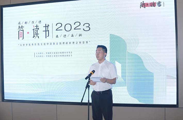 首先,费永刚致欢迎词,表达了对成都民进“简•读书”走进高新的期待和支持。随后,杨建德发表讲话,他指出,书籍是人类进步的阶梯,是智慧的长明灯。他表示,唯有通过读书学习,紧跟时代步伐,并将读书视为一种精神追求和生活方式,才能拓宽视野、丰富人生。他呼吁与会者在读书中不断提高人文修养和思想内涵,用信仰之光照亮前行之路,并将共同的理念与价值观融入到新时代高素质参政党地方组织的建设中。