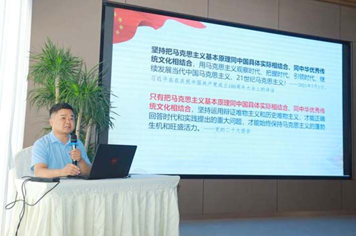 活动特邀四川省委党校哲学教研部易飞副教授作《中华优秀传统文化复兴“第二个结合”的伟大意义》的专题授课。目的是希望广大民进会员充分认识到中华优秀传统文化对个人修养和社会发展的重要价值,鼓励大家从中华优秀传统文化中汲取治国理政的智慧经验,积极服务成都经济社会高质量发展。
