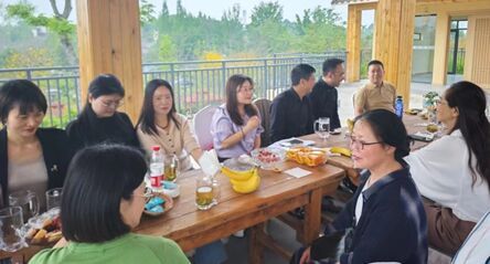随后,大家来到叶湾林盘,参观了集金弹子盆景培育、销售及观光于一体的产业盆景观赏园和西江里?园林餐厅。叶湾林盘作为邛崃乡村振兴的亮点项目,通过引入花木盆景协会,成功实现了产业的融合发展,不仅增加了村集体经济的固定资产,还为村民提供了大量就业岗位,有效促进了村民收入的增加。