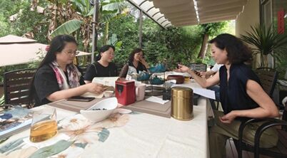 18日,民进锦江区总支在锦江区三圣花乡万福画意村举行读书分享会,14名会员参与活动,互相交流分享近期读书心得体会。