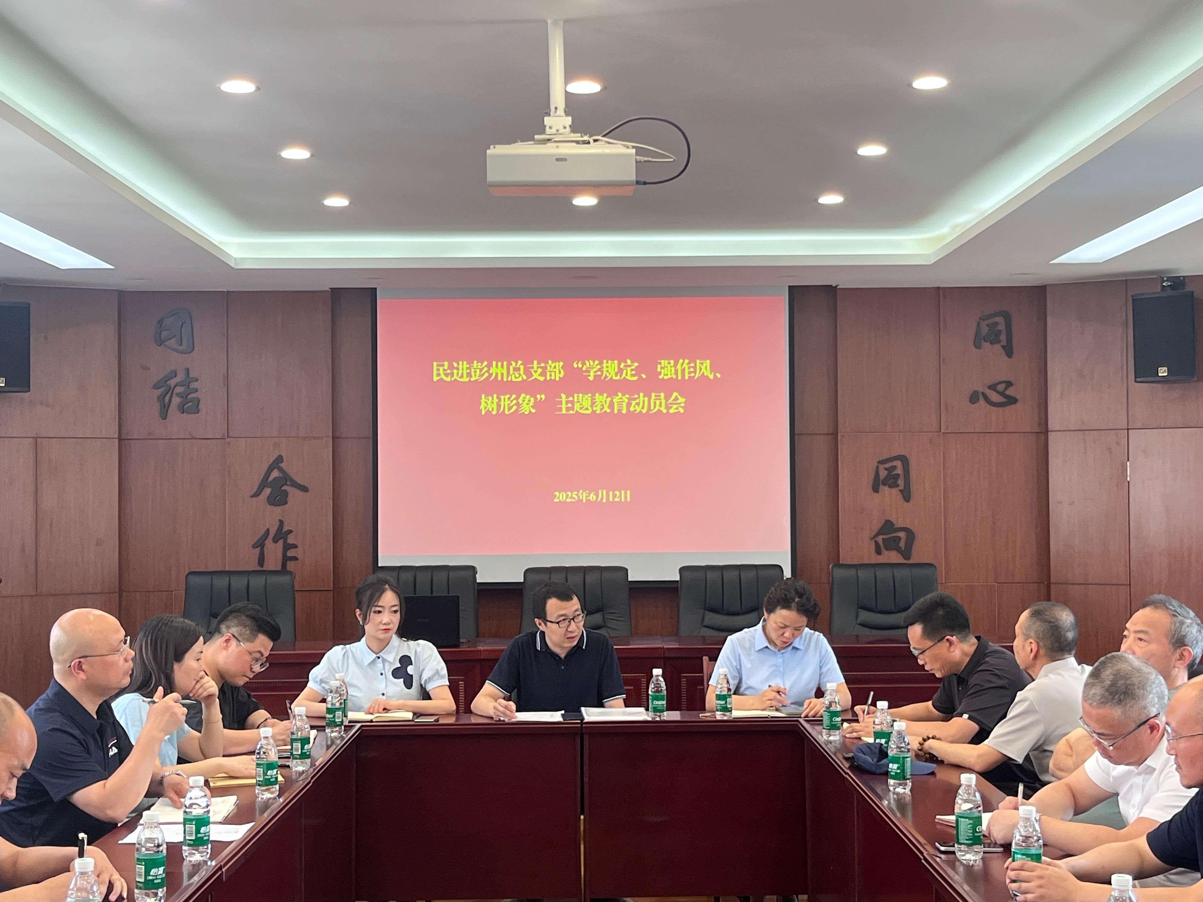 为深入贯彻落实民进中央、省委会、成都市委会关于“学规定、强作风、树形象”主题教育的相关部署,6月12日,民进彭州市总支在彭州党派服务中心召开“学规定、强作风、树形象”主题教育动员会。