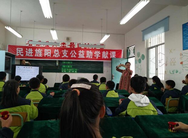 献课结束后,举行了书籍赠送仪式,和新思源学校的学生代表、学校领导作了感谢发言,民进旌阳总支副主委梁毅代表总支发言,他介绍了中国民主促进会是以从事教育、文化、出版工作的高、中级知识分子为主,具有政治联盟性质的政党,参与社会服务是其一项重要职责。民进德阳市委会成立30年来,关心德阳教育发展,长期致力于教育公益服务,开展了帮扶贫困学生完成学业、慰问留守儿童、公益助学、公益支教、公益捐赠等社会公益活动,受到学生及社会各界一致好评;旌阳总支自去年成立以来,首次到和新思源学校来看望同学们,给40位同学各赠送一套中国古典文学名著,并给学校赠送一批中、小学生创新作文书籍;在全民阅读的今天,希望同学们多读书、勤读书、读好书,通过读书丰富自己的精神生活、增长自己的知识才干,提高自己的人文素养,为将来成为国家的栋梁之才奠基,为实现中华民族的伟大复兴增添力量。