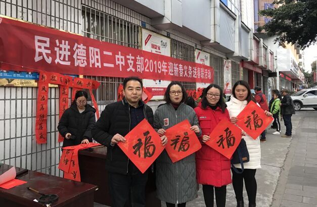 为弘扬中国传统文化,营造新春佳节的喜庆气氛,民进德阳二中支部于1月20日、21日开展了为期2天的“春联进万家”社会服务活动。通过书写春联这种群众喜闻乐见的方式,在弘扬中华传统文化的同时,也为老百姓送去了春联和福气,是文化惠民工作的有力体现。