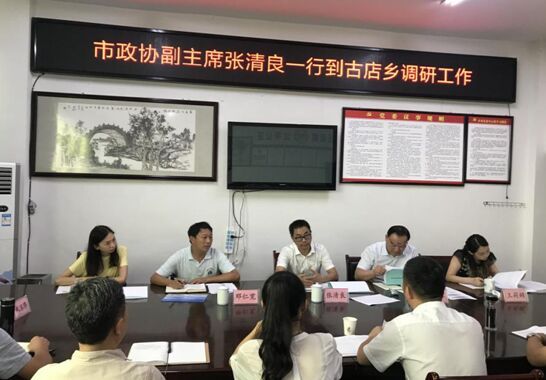 2019年7月12日,民进德阳市委主委、市政协副主席张清良携市科协党组书记、主席何学军,民进德阳市委办公室等相关负责同志赴中江县古店乡开展脱贫攻坚大排查、补短板等相关工作督导以及开展助力古店产业发展等工作研究。 张清良听取了古店乡党委书记陈勇关于大排查及补短板工作推进情况及存在问题等方面工作的汇报。他要求:古店乡要充分领会省、市关于开展“两不愁三保障”回头看大排查的指示精神,认真开展大排查以及补短板工作,基础数据至关重要、马虎不得、直接关系脱贫攻坚效率质量,要扎实摸清家底、聚焦突出问题,搞精准、弄明白,边排查边补缺,确保如期完成任务。