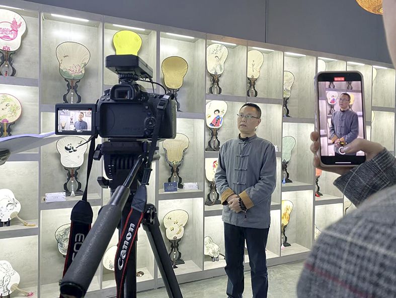 3月27 日,民进德阳市机关一支部会员、德阳潮扇第四代传承人、四川省非遗省级传承人、四川省工艺美术大师杨占勇潮扇作品吸引西安电视台关注,专程来到德阳进行拍摄。