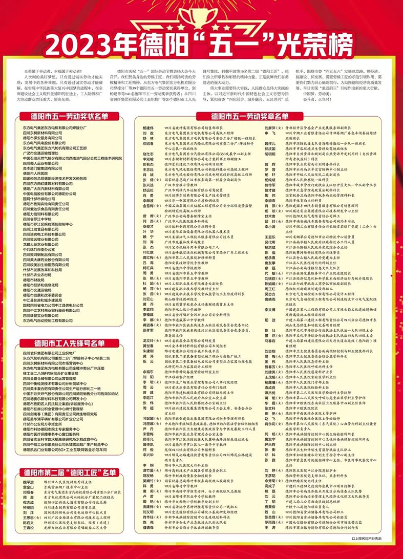 近日,在德阳市举行的庆祝“五一”国际劳动节暨表扬大会上,民进德阳市旌阳支部委员、四川旌兴建设发展集团有限公司联合工会主席周超荣获德阳市五一劳动奖章。