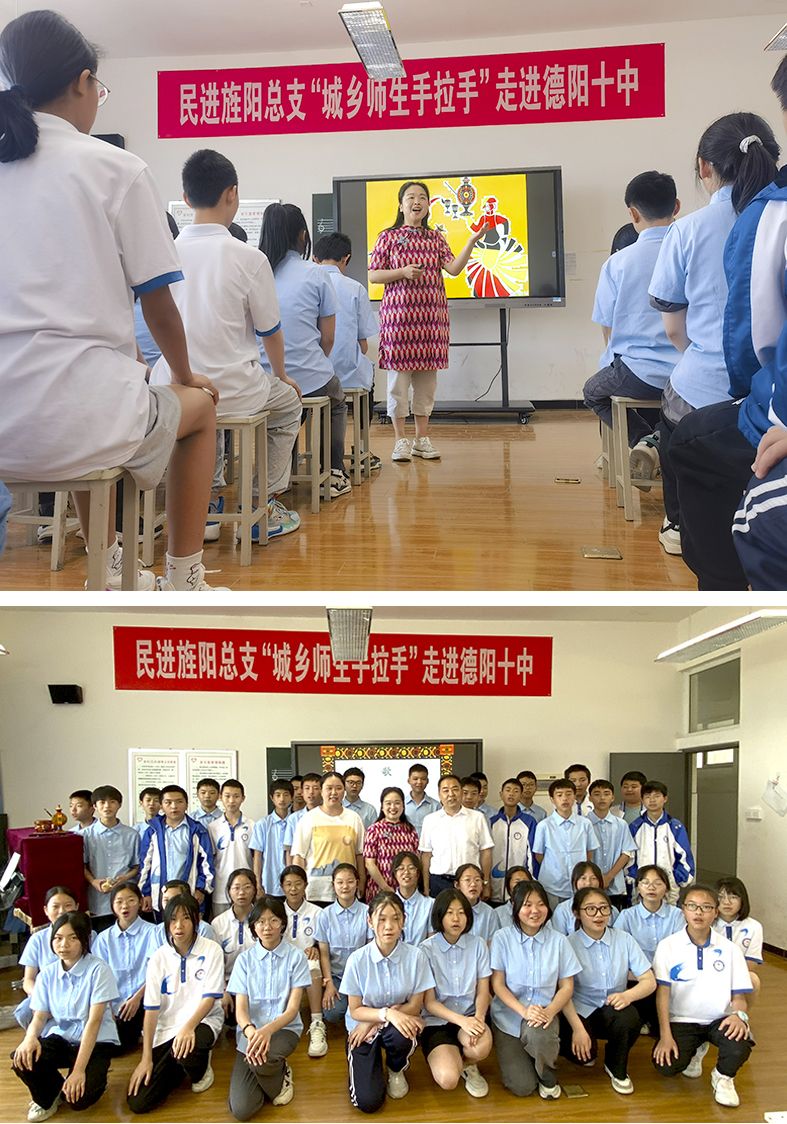 5月18日,民进德阳市旌阳总支“城乡师生手拉手” 送教进课堂活动走进德阳第十中学校。活动由民进旌阳总支副主委梁毅组织,总支所属各支部会员参与活动。