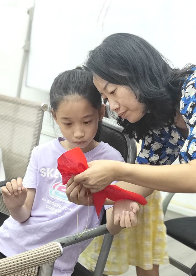 活动期间,刘甜甜亲自带领学生们进行蜀绣基础教学,并通过讲解、示范以及实际操作让学生们全面了解和掌握蜀绣的技艺和精髓。学生们在活动中,不仅学习了蜀绣的起源和发展历史,还在刘甜甜的指导下,亲自动手绣制了相对简单的图案,感受到蜀绣作为一门精细的手工艺术,需要的耐心和细致。