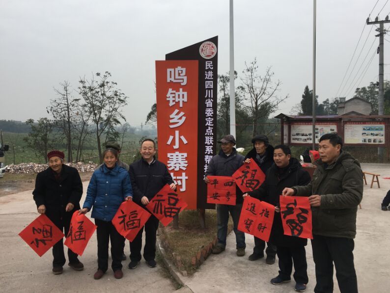 四川民进和小寨村结缘于2016年。每年春节前夕,民进四川省委都会前来看望慰问小寨村的父老乡亲,“春联万家”活动作为文化扶贫的重要内容,是民进省委送给小寨村乡亲们的一份特别的新年礼物。这是民进四川开明画院连续第三年到鸣钟乡开展送春联活动。前两次在场镇,今年则直接将文化大餐送到乡村院坝,活动更贴心,村民们领取也更加方便快捷了。