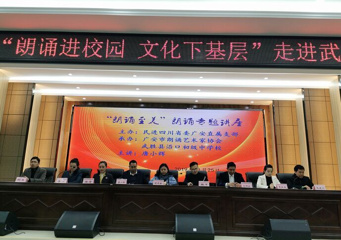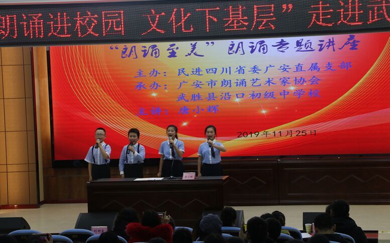 11月25日,民进广安直属支部2019年第四季度“朗诵进校园,文化下基层”活动走进武胜县沿口初级中学校,为广大师生上了一堂生动的朗诵专业课。