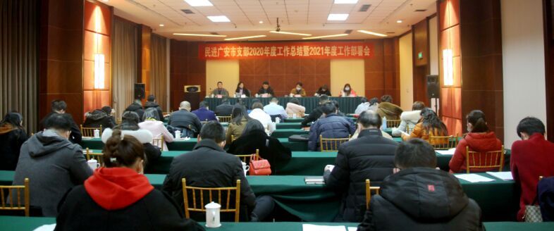 2021年1月23日,民进广安市支部在思源酒店召开2020年总结会暨2021年工作部署会。中共广安市委统战部党派科副科长田世安出席并讲话,民进广安市支部主委、广安市医保局副局长刁志强作2020年工作汇报。