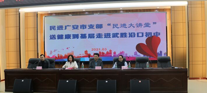 讲座正式开始前,支部主委刁志强对“民进讲堂”的目的、形式、意义和全年活动安排进行了介绍。刁主委表示,“民进讲堂”是广安民进继“高考轻松备考”公益巡讲、“朗诵进校园,文化下基层”系列活动之后,于2021年重点打造的社会服务特色品牌。支部将充分利用会内外资源,邀请各领域专家有计划地推出关爱女性健康、5G技术及应用、学悟中共党史、文博知识普及、川渝合作经济圈建设等系列讲座,更好地服务于会员思想建设和地方经济社会发展。值此三八妇女节即将来临之际,刁主委特向女会员和女老师们致以节日的问候,并对沿口初中给予活动的大力支持表示感谢。