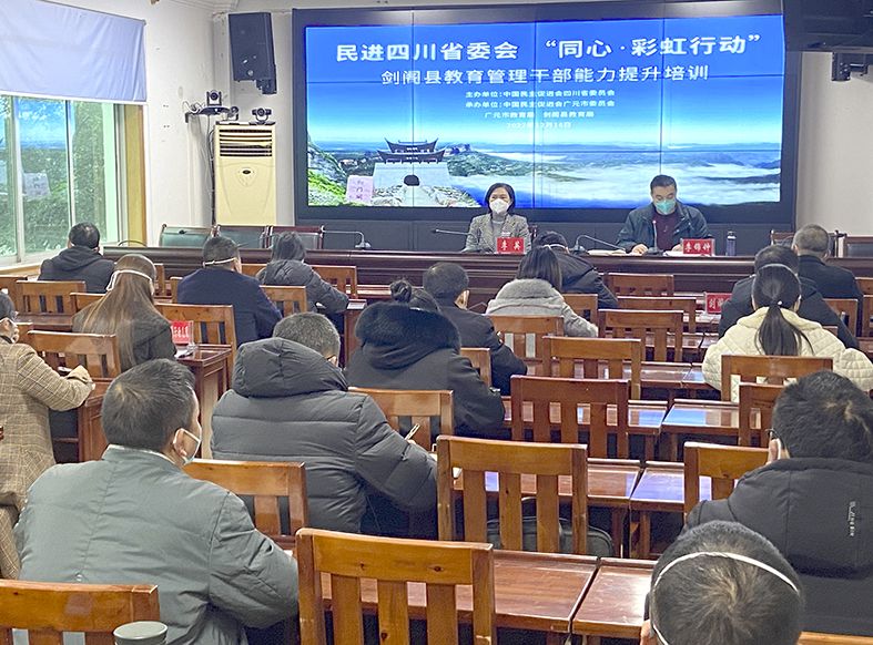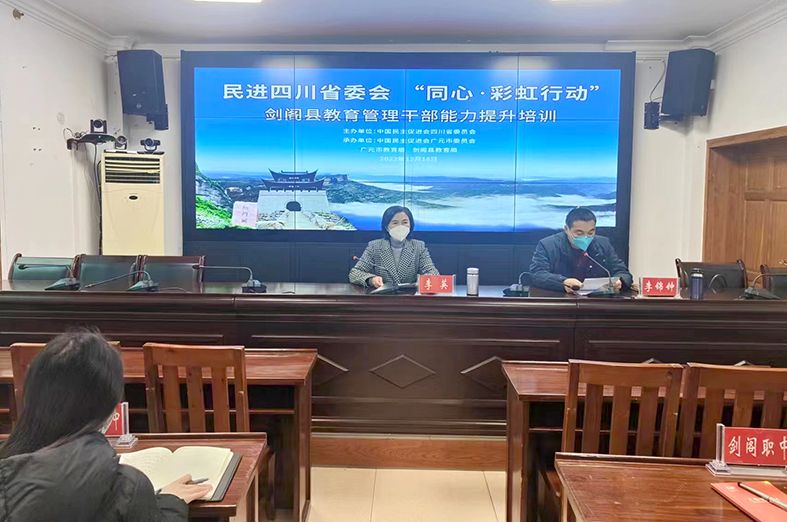12月16日上午,民进四川省委会“同心·彩虹行动”教育管理干部能力提升培训班开班仪式在剑阁县教育局二楼会议室举行。受民进四川省委会委托,民进广元市委会副主委、市教育局副局长李英致辞,中共剑阁县委教育工委书记、县教育局党组书记李锦钟主持开班仪式。