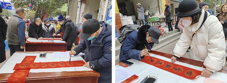 活动持续到中午12点多,乡亲们还久久不舍散去,围绕在桌边请书法老师们多写几副。据悉,活动当日短短两个小时,送出春联300余副,福字150多个。此次活动不仅弘扬了中华优秀传统文化,助力基层文化建设,还将新春祝福送到了广大群众身边,营造了健康文明、喜庆祥和的新春文化氛围,有力地提升了群众的获得感、幸福感。