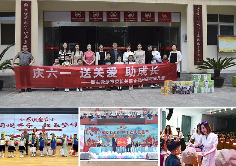 市委会机关联合其他民主党派市委会机关一行为市儿童福利院的特殊儿童们送去衣服、牛奶、玩具、矿泉水、糖果等生活物资。民进昭化支部、朝天支部会员分别为元坝一小、福祥幼儿园的孩子们捐赠学习用品、体育用品和儿童书籍等,与孩子们亲切交流,了解他们的学习及生活情况,教师会员还与学校教师详细交流教学、学生管理方面的经验和心得。市直属七支部会员刘兴东为朝天区曾家镇一小、曾家镇二小两所学校分别捐赠“六一”慰问留守儿童现金1万元。市直属文化支部会员王文华、陈风良和朝天支部会员黄国军3人为唤马镇小学校捐赠书籍100余本,赠送书法作品2幅,为孩子们赠送现场创作的美术书法作品20余幅,将传统文化带进校园,带入孩子们的心里。