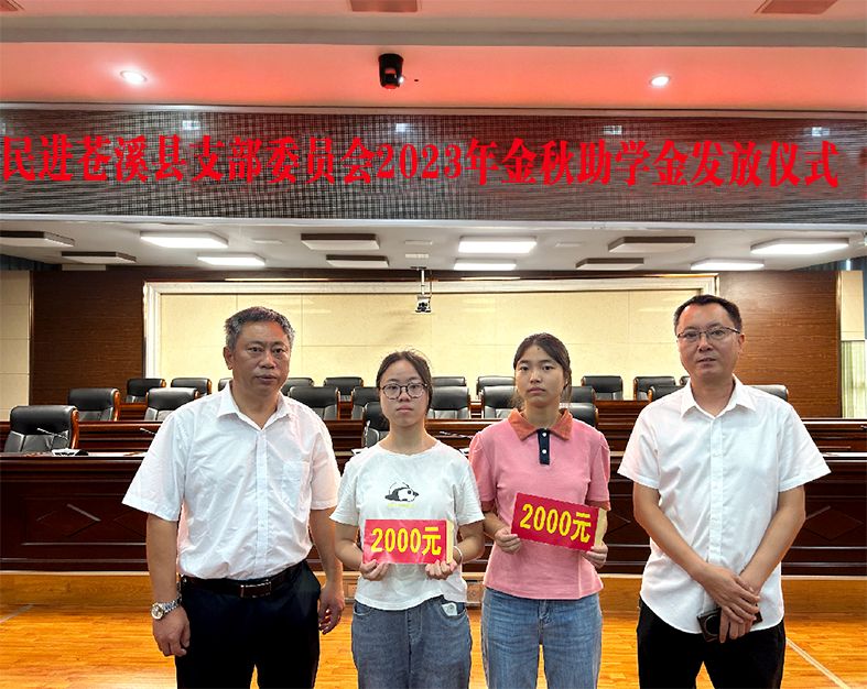 8月25日,借助苍溪县2023年“金秋圆梦”助学暨卢俊卿奖学金发放仪式时机,民进苍溪县支部同时向两名困难学生发放助学金四千元,为两名优秀的困难学生顺利走进大学校园解决了燃眉之急。