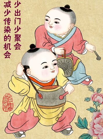 特别年画以憨态可掬的年画胖娃儿和威风凛凛的秦叔宝为主体形象,通过生动的画面、醒目的标语,提醒和倡导社会公众勤洗手、戴口罩、做防护,从而提高老百姓卫生防疫知识的普及水平,助力打赢疫情防控阻击战。