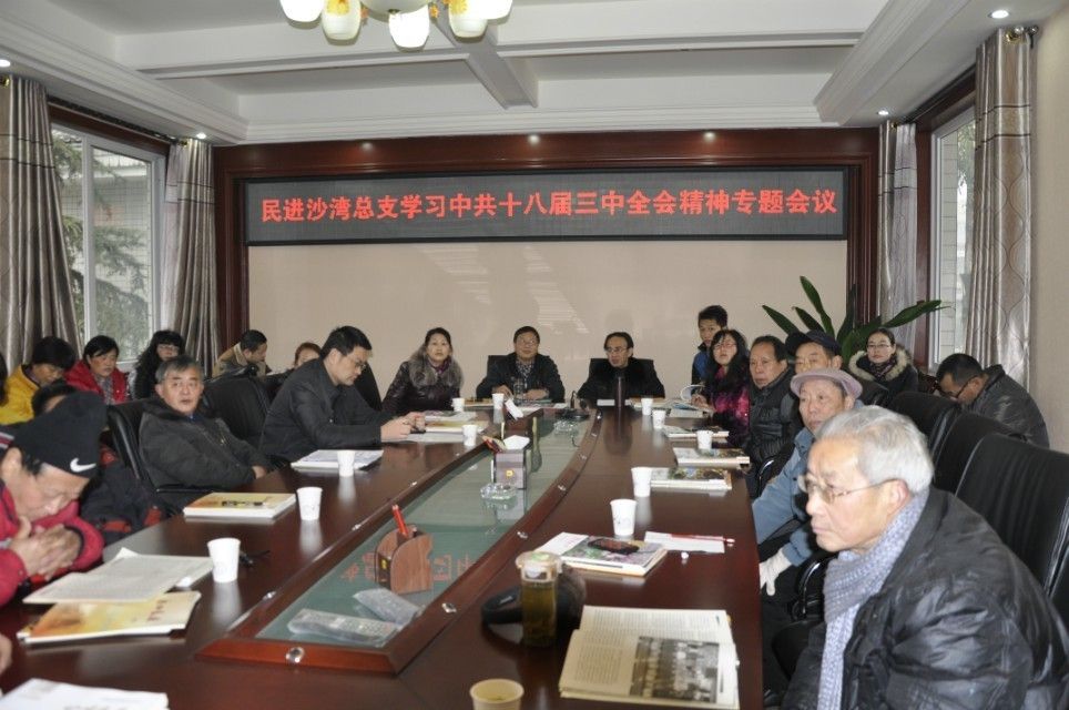 1月18日,民进乐山沙湾总支全体会员在中共沙湾区纪委二楼会议室召开学习中共十八届三中全会精神专题会议。这次会议由总支副主委杨利贤牵头并主持,由民进沫若中学支部承办。区委统战部领导刘怀祥莅临参会指导。