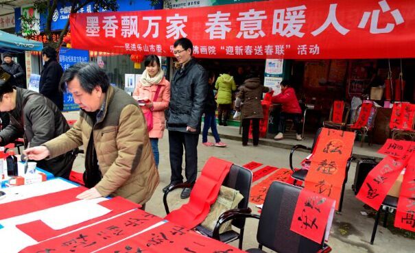 为引导民进书画界会员发挥优势,在春节前夕营造喜庆祥和的文化氛围,更好地服务社会、服务基层,同时展示民进良好社会形象,民进乐山市委积极响应民进中央关于在春节前举办民进“迎新春、送春联——书画家进社区活动”的号召,积极开展送春联社会服务活动。
