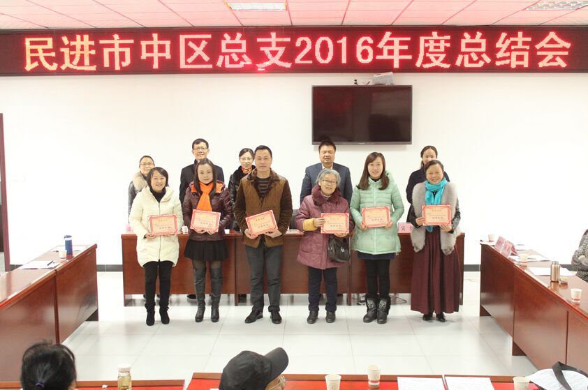 会上,总支副主委张旭琼组织全体会员认真学习了党的十八届六中全会、市“三会”的精神。总支主委、市中区人民政府副区长尹秀英向与会领导、会员详细总结了总支2016年的工作及2017年的工作思路。区统战部宿部长在充分肯定了总支2016年的工作和取得的成绩基础上,给总支和全体会员提出希望和要求:加强学习,转变观念,提高认识;发挥党派优势,为市、区经济社会的发展再作新贡献;加强自身建设,不断提升会员素质;凝心聚力,围绕市区党委、政府中心工作建言献策。市委主委、市政协副主席刘波作总结发言,在充分肯定总支一年来的工作和取得的成绩的基础上,围绕如何转变一个角色、统筹好两项工作、增强三种意识、抓住三个重点、搞好三项建设等方面给总支和全体会员提出了希望和要求。会议表彰了总支2016年会务工作先进个人。