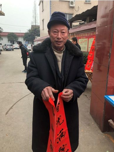 当地群众拿着新鲜出炉的春联,高高兴兴迎接新年。老大爷说:“免费送春年,这个活动好!希望你们明年还来!”