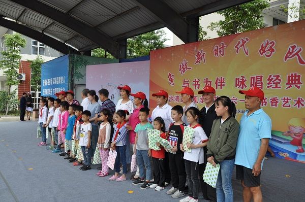 5月31日,绥山退干站老年志愿者和沙湾区老年大学老年志愿者在凤凰学校举行“与书为伴,咏唱经典”庆“六一”书香艺术节活动。民进会员、老年志愿者程明凯参加此活动,并捐款200元。