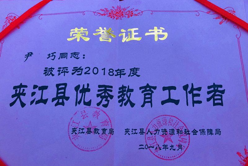 ——民进夹江县支部副主委尹巧获优秀教育工作者称号