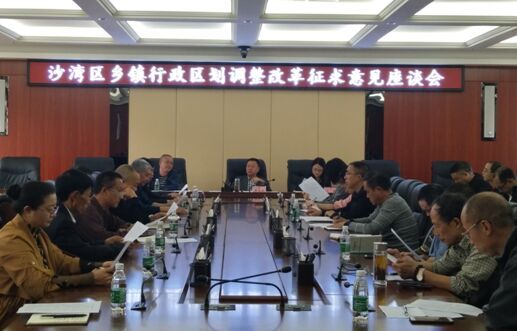 会议由区政协主席黄大敏主持。分二个议程:一是听取区民政局局长张金文作沙湾区乡镇行政区划调整改革方案的情况说明。二是听取人大代表、政协委员、老干部、乡镇代表、村民代表等各界人士的意见或建议。
