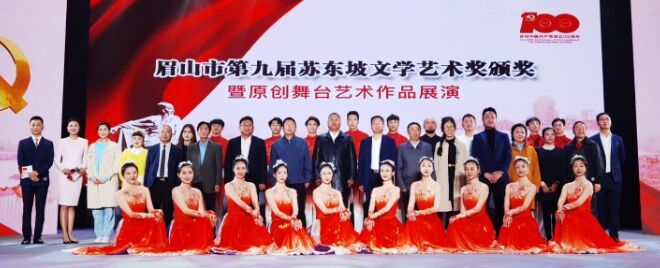 4月9日下午,由中共眉山市委宣传部指导、眉山市文学艺术界联合会承办的庆祝中国共产党成立100周年·眉山市第九届苏东坡文学艺术奖颁奖暨原创舞台艺术作品展演在眉山市职业技术学院艺术中心隆重举行,全市文艺界代表齐聚一堂,共享文化艺术成果,向党的百年华诞献礼致敬。