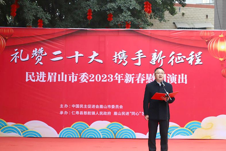 为宣传贯彻党的二十大精神,助力乡村文化振兴,1月17日下午,民进眉山市委组织民进眉山“同心”艺术团赴对口联系的仁寿县慈航镇开展了“礼赞二十大 携手新征程”新春慰问演出。眉山市政协副主席、民进眉山市委主委向东出席活动并致辞。