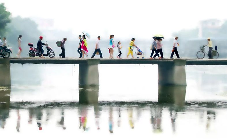 2015 中国摄协 中国第16届国际摄影艺术展览入展《古桥.行人》乐山市苏稽镇
