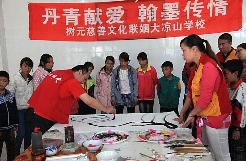 7月1日,民进绵阳市委宣传部副部长、国家二级美术师杨盛,受民间慈善家叶树元邀请,来到凉山州盐源县长柏小学,看望被资助的十几名贫困学生,并与该校师生共同庆祝党的93岁生日。