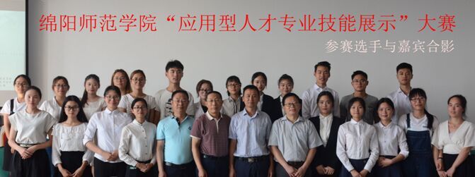2017年6月6日下午,在绵阳师范学院高新校区知行楼914会议室,民进绵阳师范学院委员会主办的绵阳师范学院“应用型人才专业技能展示”大赛成功举行。绵阳师范学院党委常委、宣传部、统战部部长王德炎教授、中国民主促进会绵阳市委员会副主委蒋正强先生、九三学社绵阳师范学院支部主委、外国语学院副院长郭凤鸣教授、民盟绵阳师范学院总支委员会副主委赵策先生、民进绵阳师范学院委员会主委张先华教授应邀光临指导。张先华教授致词,初选出的9个代表队逐一上台展示专业技能,王德炎教授作点评总结,蒋正强先生等各位嘉宾为参赛选手颁发了获奖证书。