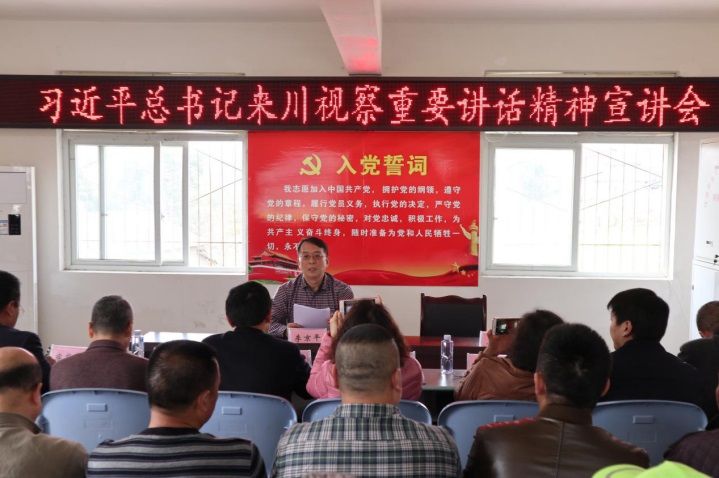 在村会议室,李京平用通俗易懂的语言,浅显生动的事例,结合当前形势和白沙村村情,全面、准确、深刻地宣讲了习近平总书记来川视察重要讲话的精神实质和核心要义,让习总书记重要讲话精神扎根在基层干部群众的心里。