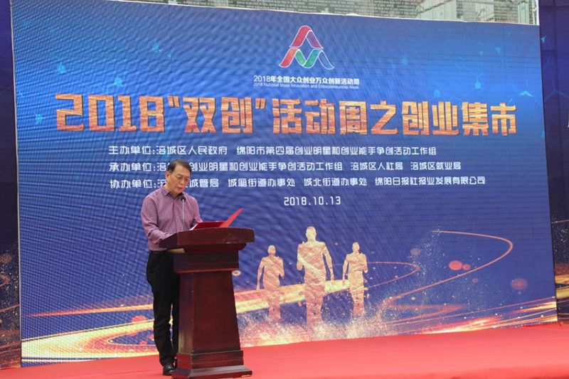 10月13日,以“搭建创业平台,激发创业热情,实现创业梦想,分享创业成果”为主题的2018“双创”活动周之创业集市在绵阳市涪城区志愿文化广场隆重举行,市就业服务管理局局长贾智艳主持启动仪式,市政协副主席、民进市委主委李京平在启动仪式上讲话并宣布创业集市启动。