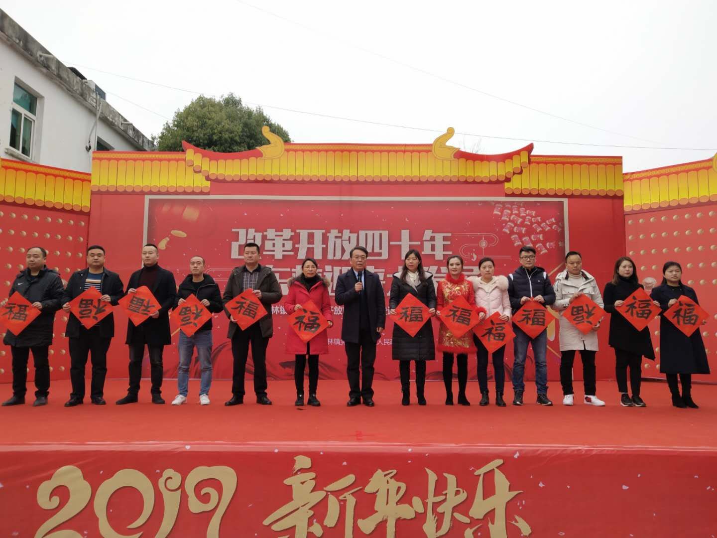在现场同时举办的东林镇纪念改革开放四十周年迎春文艺汇演中,民进会员艺术家们为大家表演了歌曲独唱《祝福你》等多个节目。参加活动的民进会员更是悉数登台为大家送“福”。