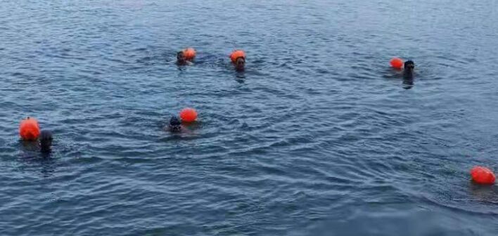 畅游活动中,游泳健儿们奋力拼搏,用顽强的毅力、持之以恒的耐力,纷纷完成了3公里的全部里程。