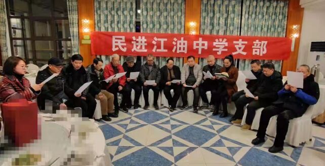 12月18日,民进江油中学支部召开支部会议,组织全体会员专题学习党的十九届六中全会精神。民进江油市基层委员会副主委蒋雪峰、江油中学党委副书记杨以双出席。