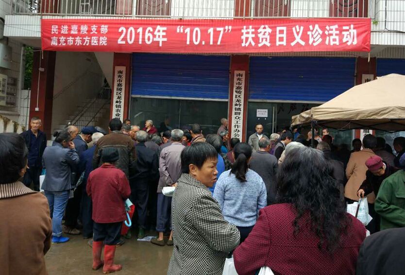 为落实嘉陵区精准扶贫工作要求和《民进嘉陵支部2016年度助力脱贫攻坚精准扶贫工作计划》,10月17日,民进嘉陵支部携手南充市东方医院在龙岭镇开展了“10.17”扶贫日义诊活动。