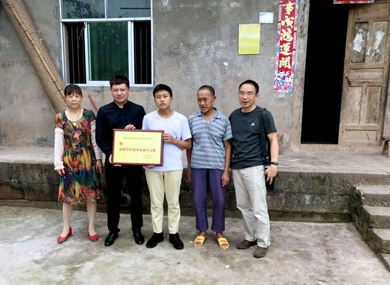 7月15日上午,民进顺庆基层委员会综合支部主委陈韬与南充尚书坊教育志愿者早早地来到辉景镇五龙桥村贫困学生寇蒙家中开展扶贫助学活动,为他送去3000元助学基金。
