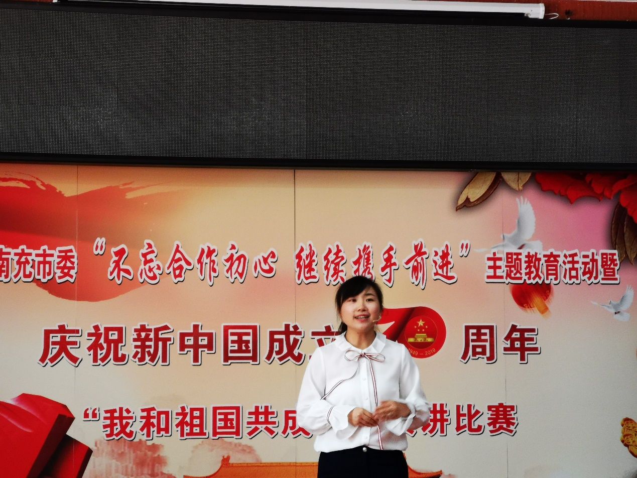 为了表达对祖国的礼赞,民进南充市委举行了庆祝新中国成立70周年的书画摄影展和“我和祖国共成长”演讲比赛和征文比赛,这也是今年以来对“不忘合作初心继续携手前进”主题教育活动的继续纵深推进。民进南高支部会员黄茜代表支部参加了演讲比赛,最终获得三等奖。杨友俊、蔡国良、蒲冰晶三位会员的征文获得优秀奖。