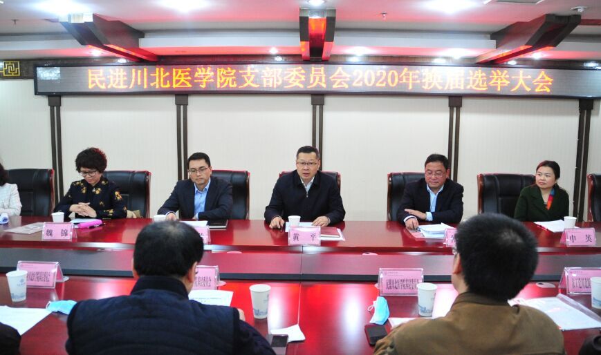 4月23日下午,民进川北医学院支部委员会换届选举大会在川北医学院顺庆校区科技楼四楼会议室举行。大会选举产生了以朱平宇为主委的民进川北医学院第四届支部委员会。南充市政协副主席、民进南充市委主委傅宗洪,民进南充市委专职副主委申英,学校党委副书记黄平,党委常委、统战部长杨竹秋,学校组织部、纪委、统战部等部门负责人及各民主党派、统战团体代表应邀参加会议。