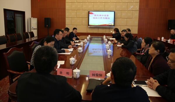 2020年10月16日下午,南充高中在顺庆校区二楼会议室召开统战工作专题会和南充高中党外人士谈心谈话活动,党委书记、校长涂刚,党委副书记王尚明,党委委员、副校长李胜,民进南充高中支部全体支委和其它民主党派代表参加了本次会议。