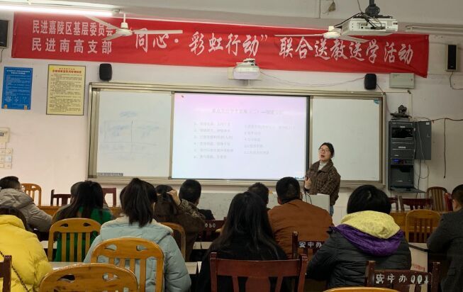 为宣传心理健康知识、关注学生心理健康、促进学生健康成长,11月24日,民进嘉陵基层委员会、民进南充高中支部联合开展了一场主题为“悦纳自我,健康成长”的“同心·彩虹”送教送学下乡活动,为安平中学的老师和学生们带去了一堂堂精彩的心理健康教学课。