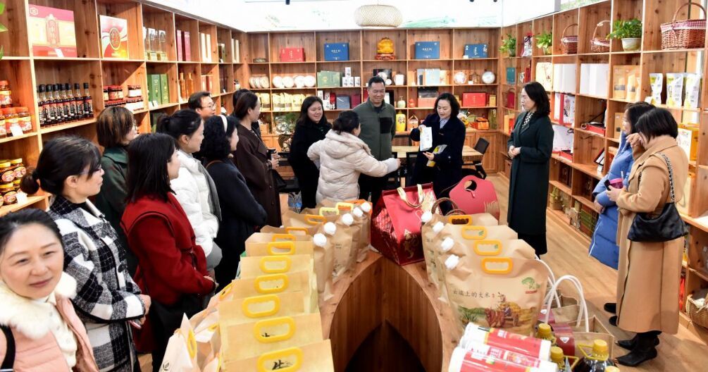 下午调研人员一行到“漩姐姐”工作室实地考察。工作室负责人杨漩介绍了工作室的基本情况,该工作室建有农产品专柜100余平方米,线上线下销售营山本土特色农副产品,年销售额达200万元;同时支部会员发挥专业优势,长期在工作室为市民开展法律、茶艺、书法、公共礼仪等公益课,在周末和节假日开展留守儿童陪伴等公益活动。