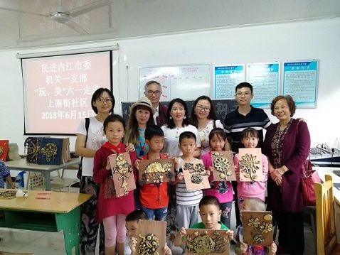 6月15日,民进机关一支部会员在主委郝光红的带领下,带着饱满的热情,冒着淅沥沥的小雨,走进上南街社区,开展“玩、美”六一活动——黏土铜版画制作手工课活动。