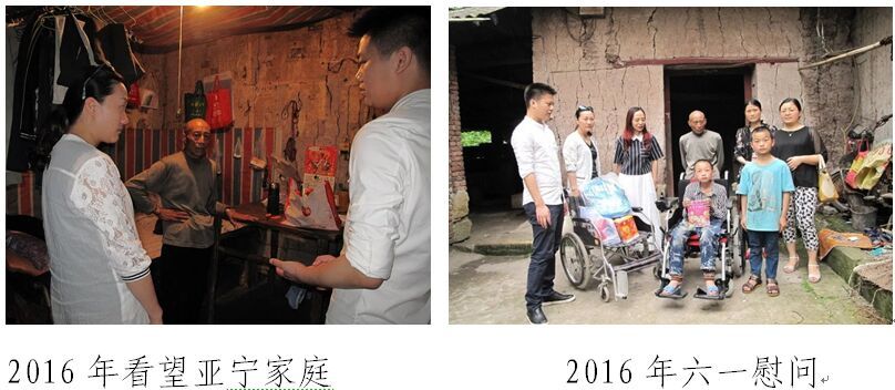 民进中区卫生支部的爱心妈妈们一直关注弱势群体的帮扶工作,2014年开始,她们从总工会了解到龚家乡有个家庭,家里有1个孤儿,1个重症肌无力少年,条件十分艰苦。会员们来到孩子家里,发现这个家家徒四壁,两个孩子面黄肌瘦,特别是李亚宁身体特别虚弱。会员们看着这样一幕,特别难受,纷纷慷慨解囊,送钱送物。回来后,大家久久不能平静,经过商议,决定将两个少年列为支部长期帮扶对象予以帮助。