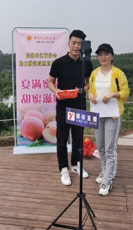 会员吴阳、柳晨莉头顶烈日,行走在千亩桃林里,在直播间热情地向网友们介绍夏满蜜桃的产品特色、营养价值、促销活动以及下单方式等,并现场试吃,跟网友们分享自己的试吃感受。两位会员在销售蜜桃的同时,也时不时穿插一些民进小知识,向网友们介绍民进内江市委会在助力脱贫攻坚战中所做的一些工作。